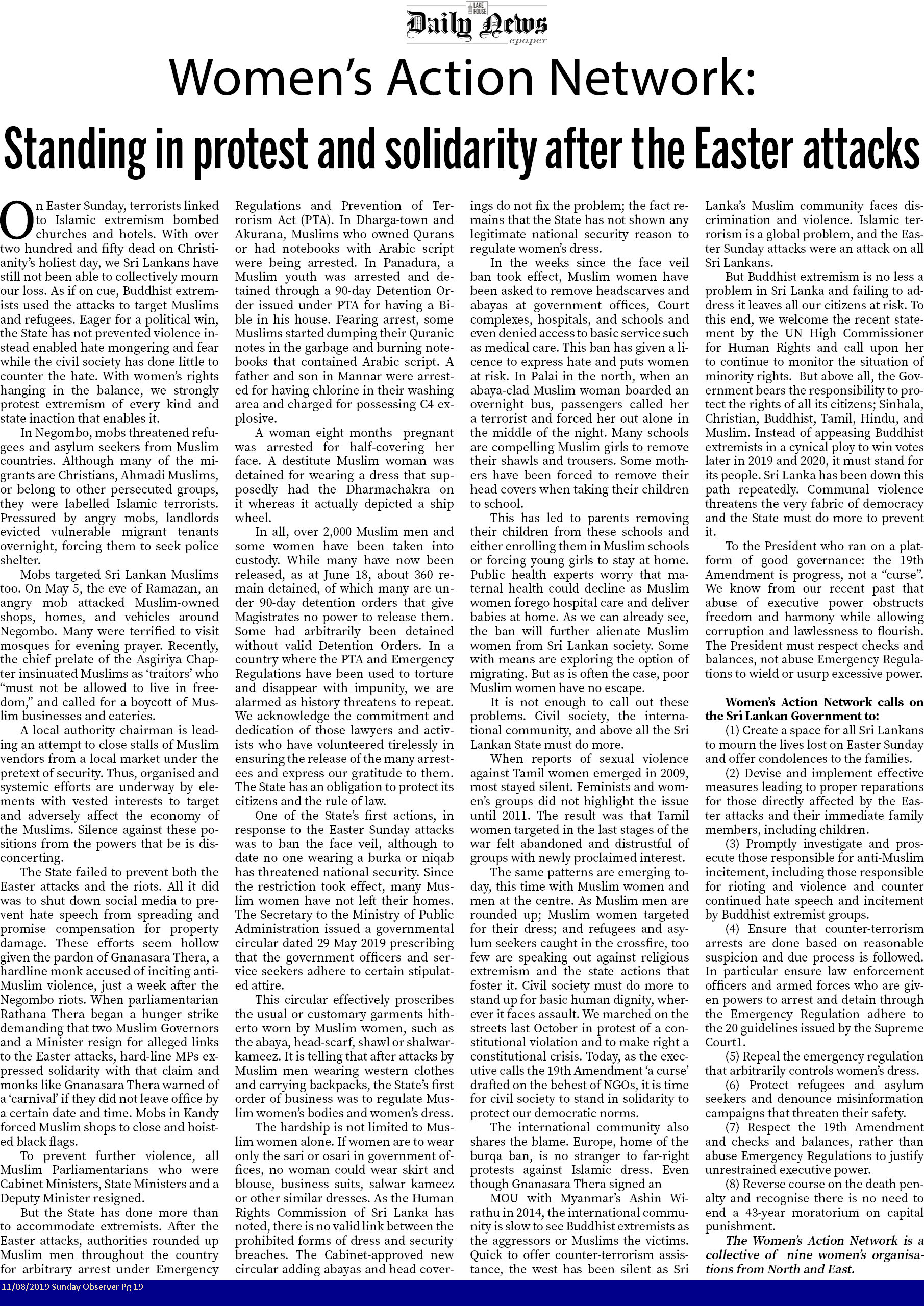 Standing in protest and solidarity after the Easter attacks