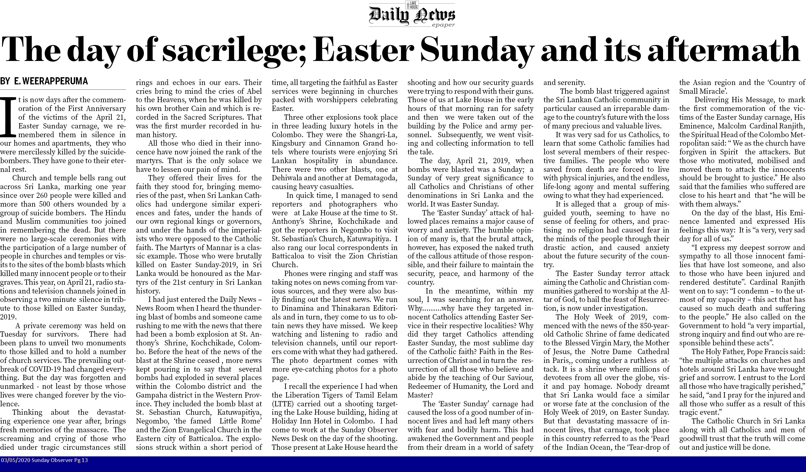 The day of sacrilege; Easter Sunday and its aftermath